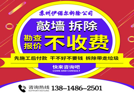 蘇州伊諾爾拆除工程有限公司是一家規(guī)模較大,經(jīng)濟實力雄厚的專業(yè)拆除公司,提供室內(nèi)拆除,砸墻,地磚,墻磚,頂,管道,公寓,酒店,辦公樓拆除服務,我們本著誠信經(jīng)營,公平交易的原則,從事家裝,工裝,大型商場拆除,建筑物廠房樓房拆除工程并回收所有舊貨設備。我們從事拆除行業(yè)多年,具有多年的拆除經(jīng)驗,提供多種建筑的內(nèi)外拆除施工服務,因為專業(yè)性,安全性,可信度高而獲得了客戶的認可。